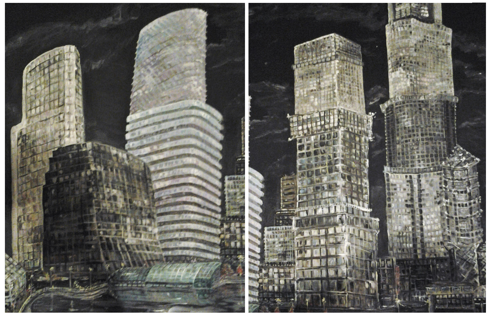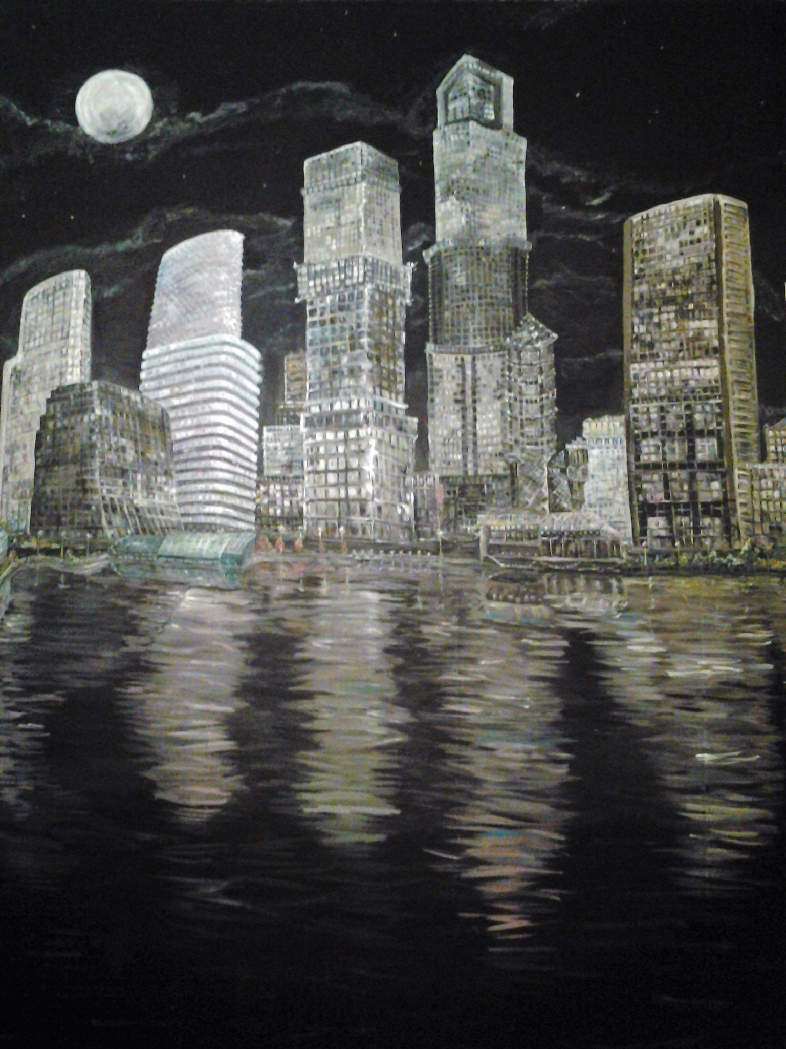 "Ночной город", 240х300 см, настенная роспись. Акрил. Фрагменты.