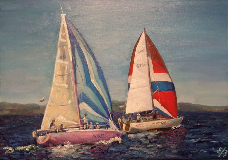 "Яхты", 35 х 50 см, холст на оргалите, масло, 2016 г.