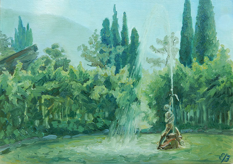 "Новый Афон. Пруд", 60х70, х. м., 2017 г.